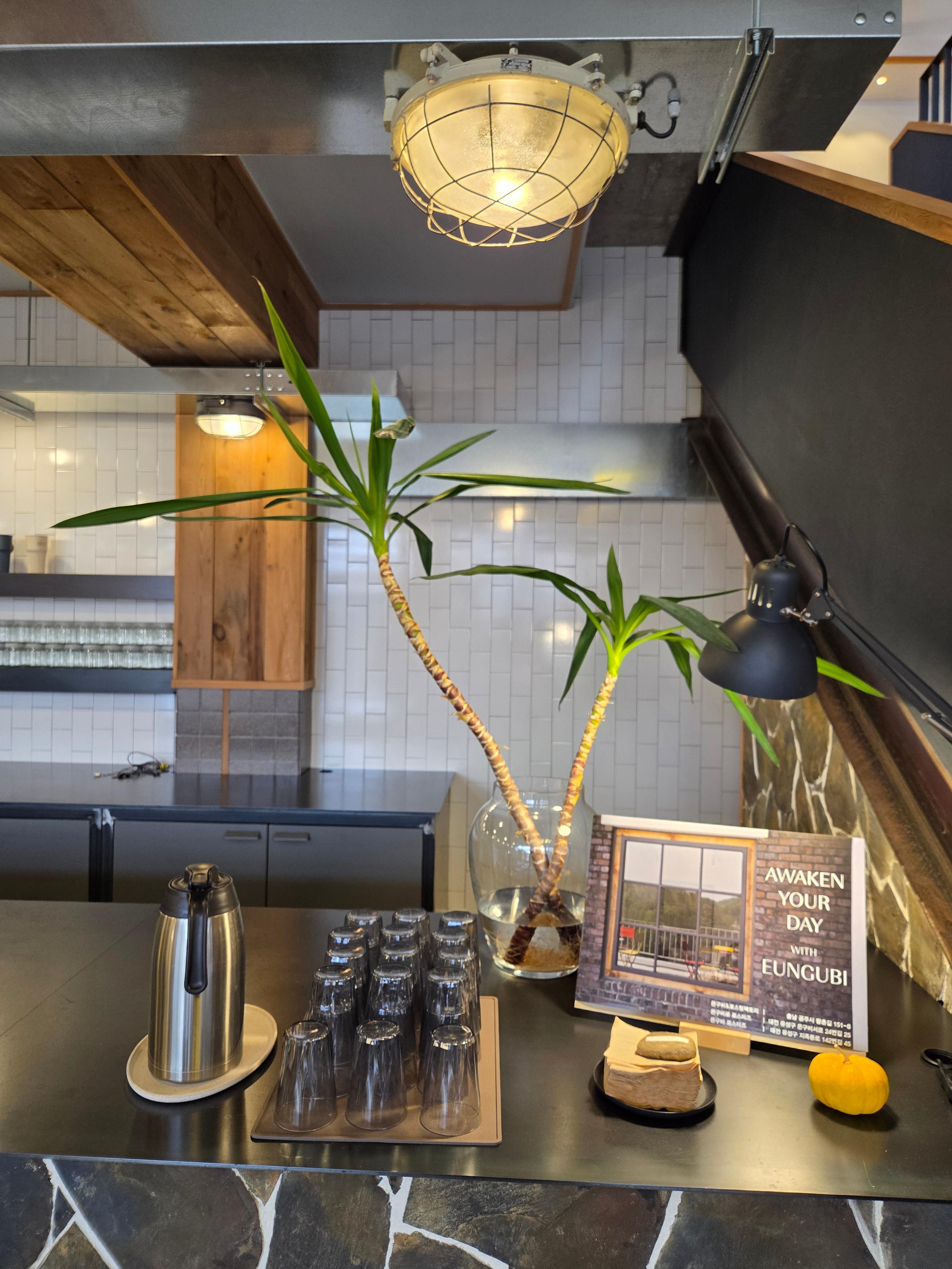 간접조명과 인테리어 소품, 식물들로