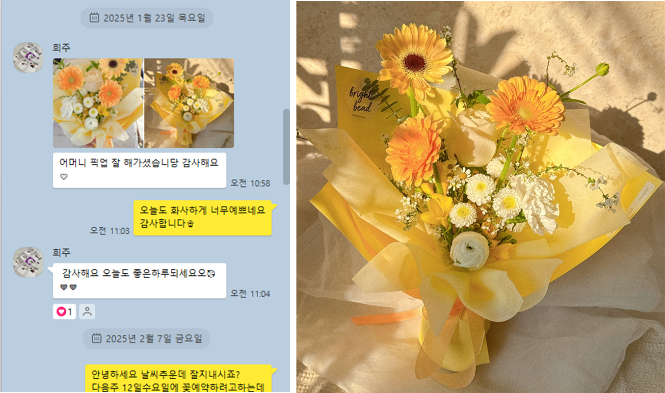 동생도 꽃선물 할 일이 생기면 이 곳을 이용한다고 해요