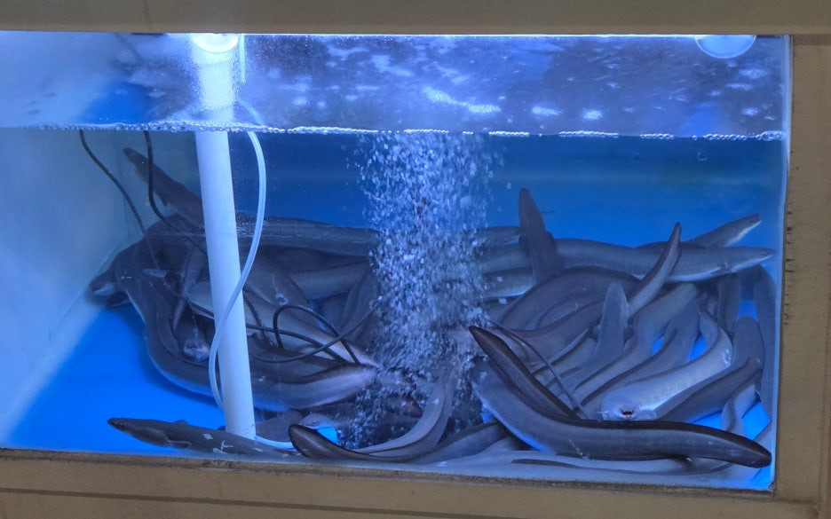 가게 입구 수족관에 있는 장어들