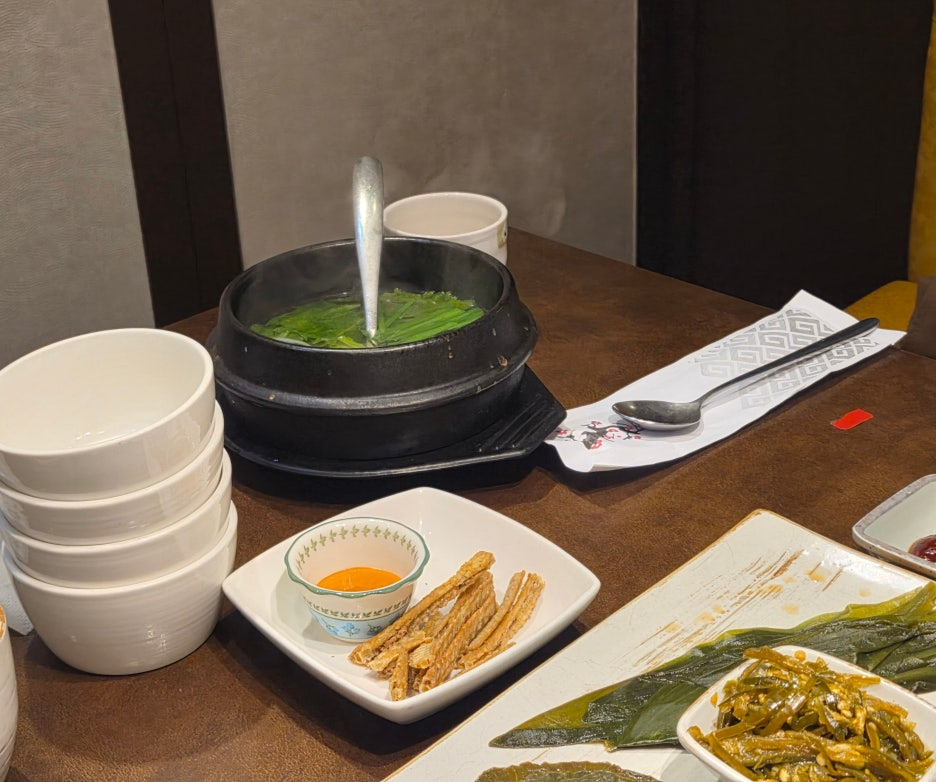 다슬기탕, 장어뼈 튀김이 나왔어요