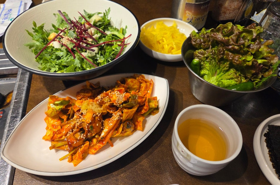 쑥갓 샐러드, 조개초무침,