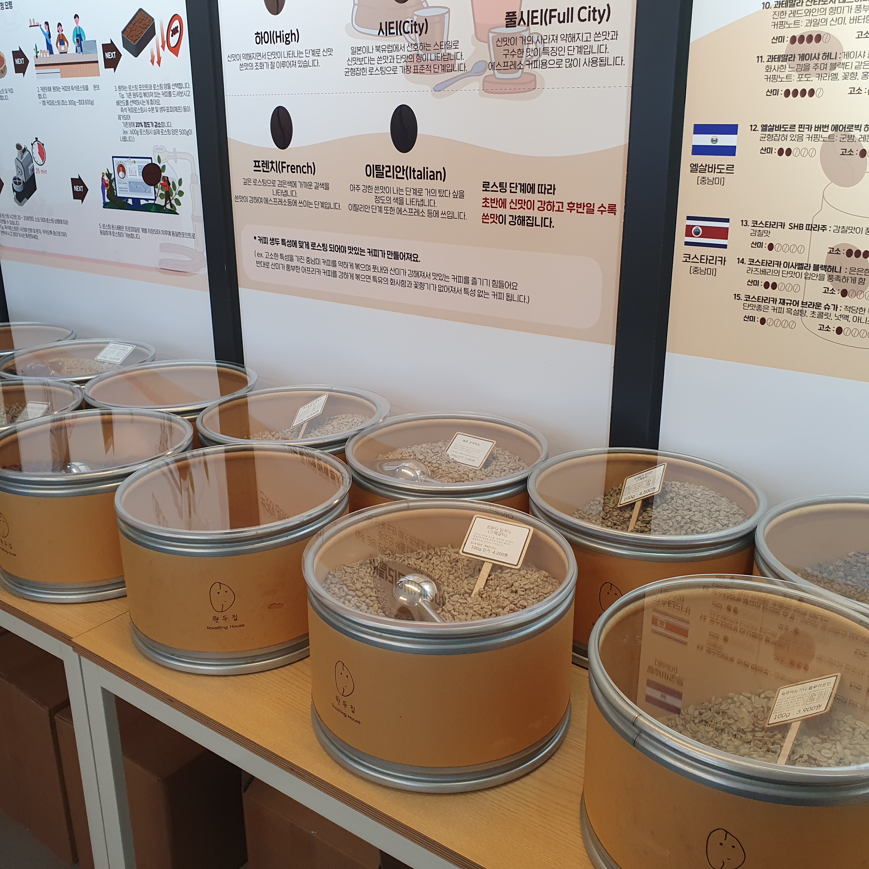 원두별 특성에 대한 설명이 벽면에 적혀 있어서