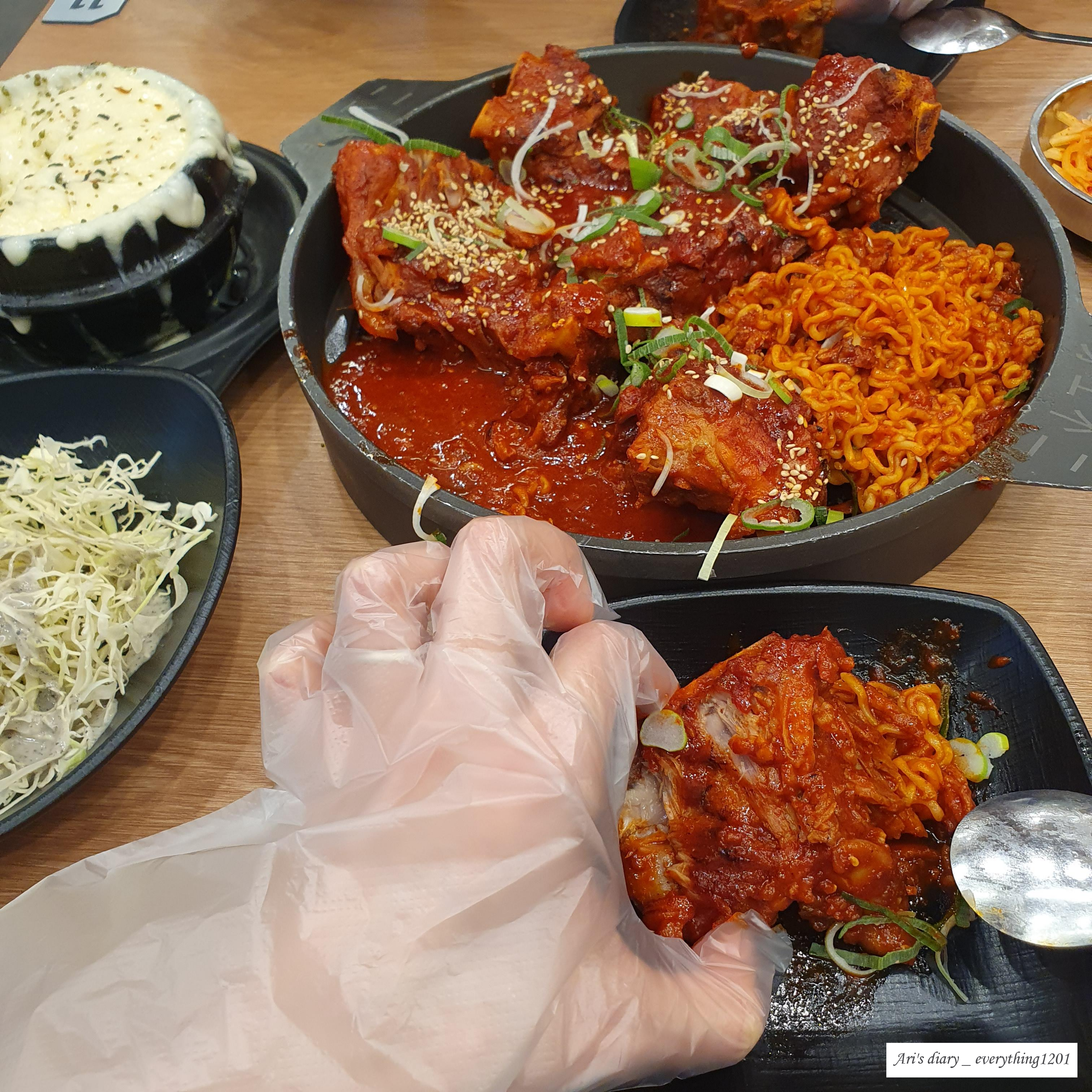 부드러운 감자뼈에 매콤하고 달콤한 소스를 발라