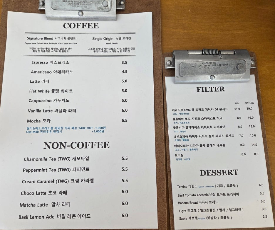 메뉴판 및 디저트 참고!!