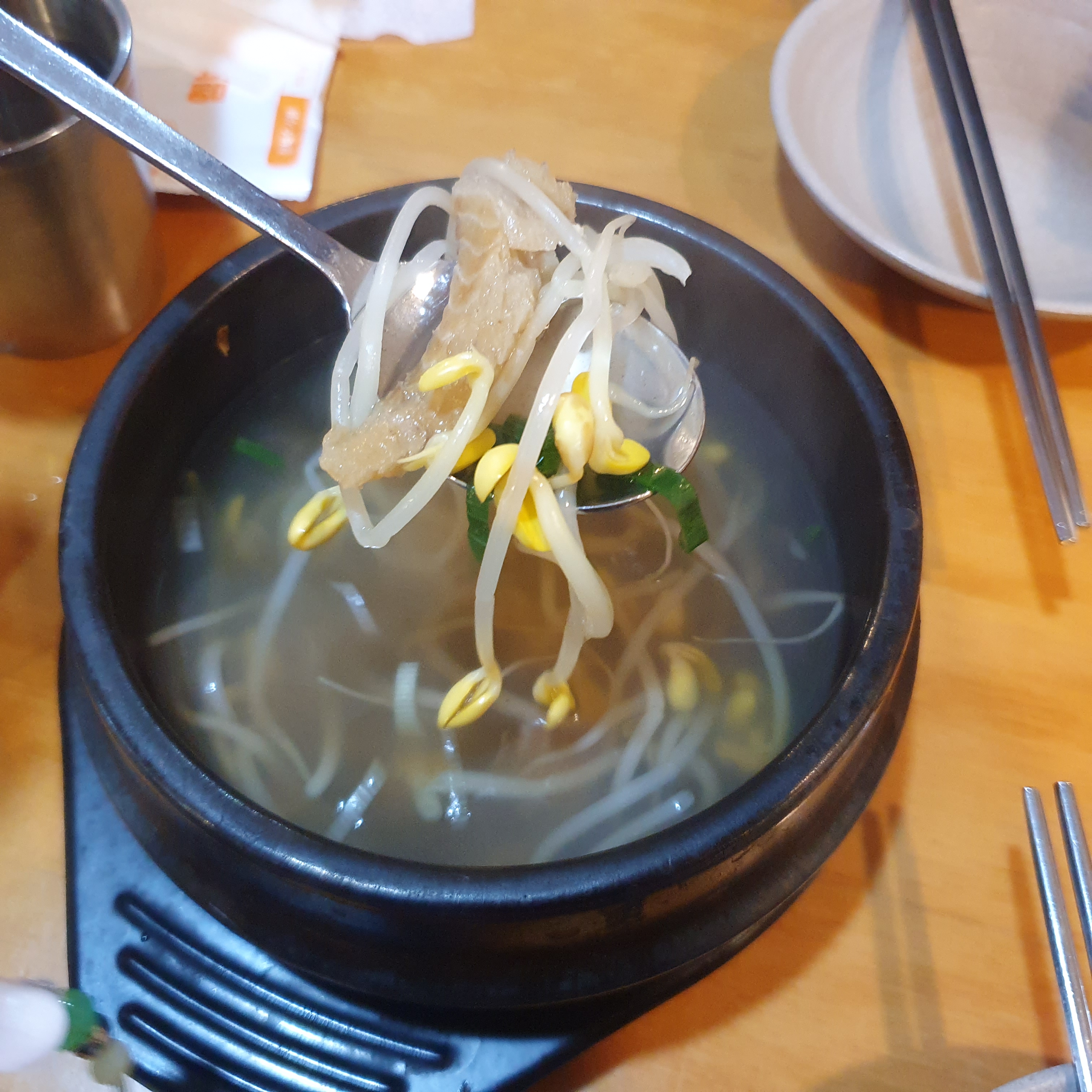 후추맛이 많이 나는 얼큰한 콩나물국