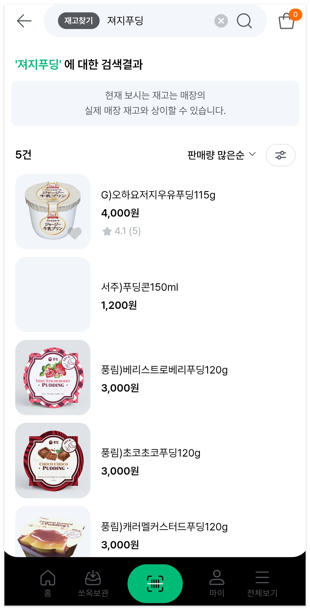 재고찾기 > 저지푸딩을 검색하면