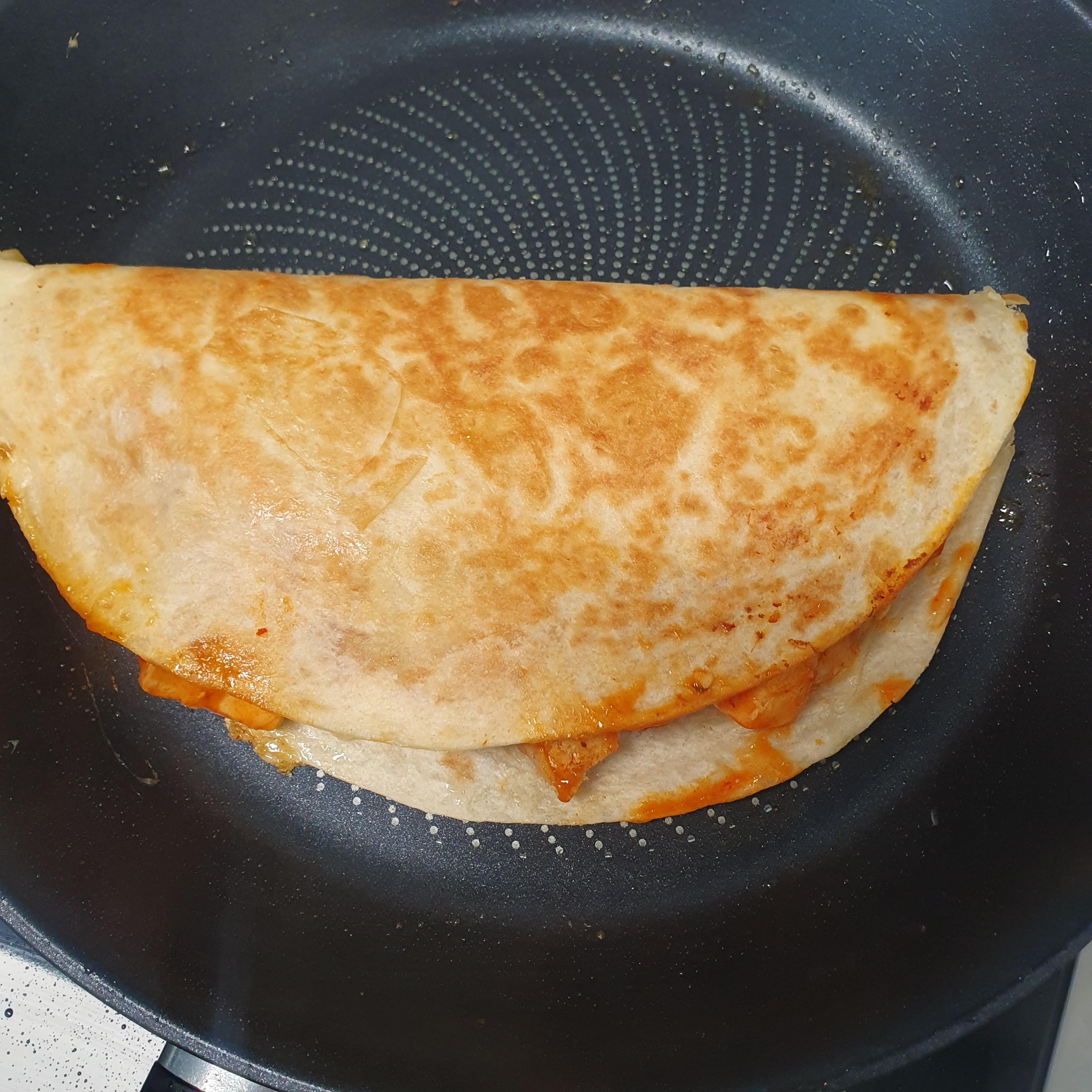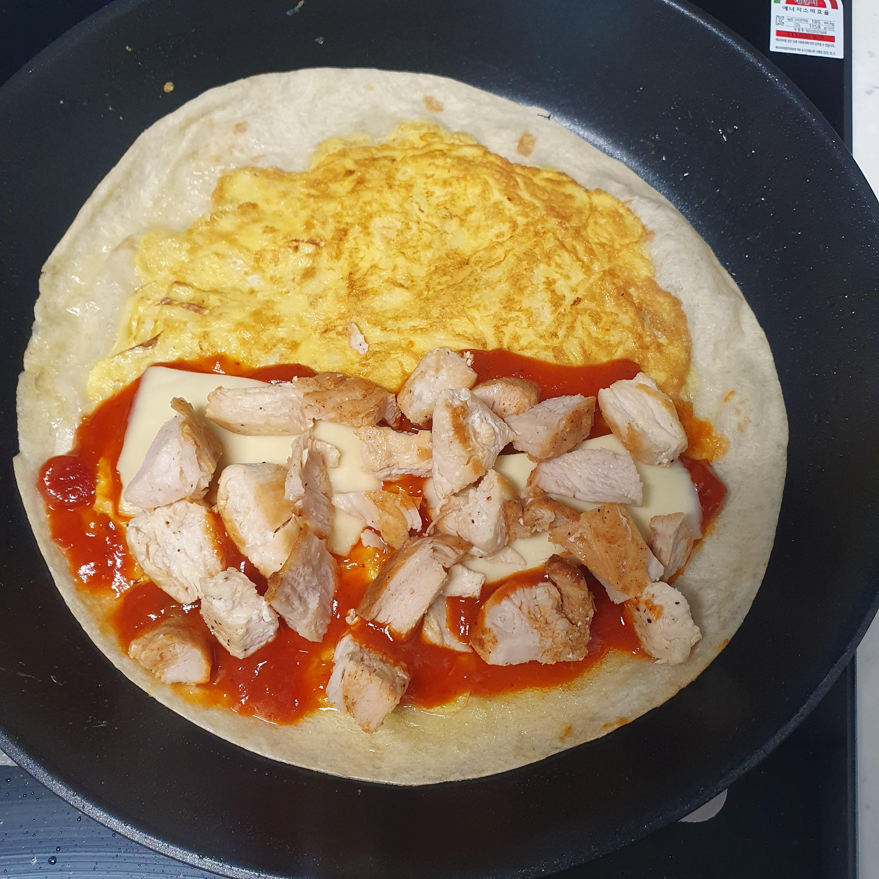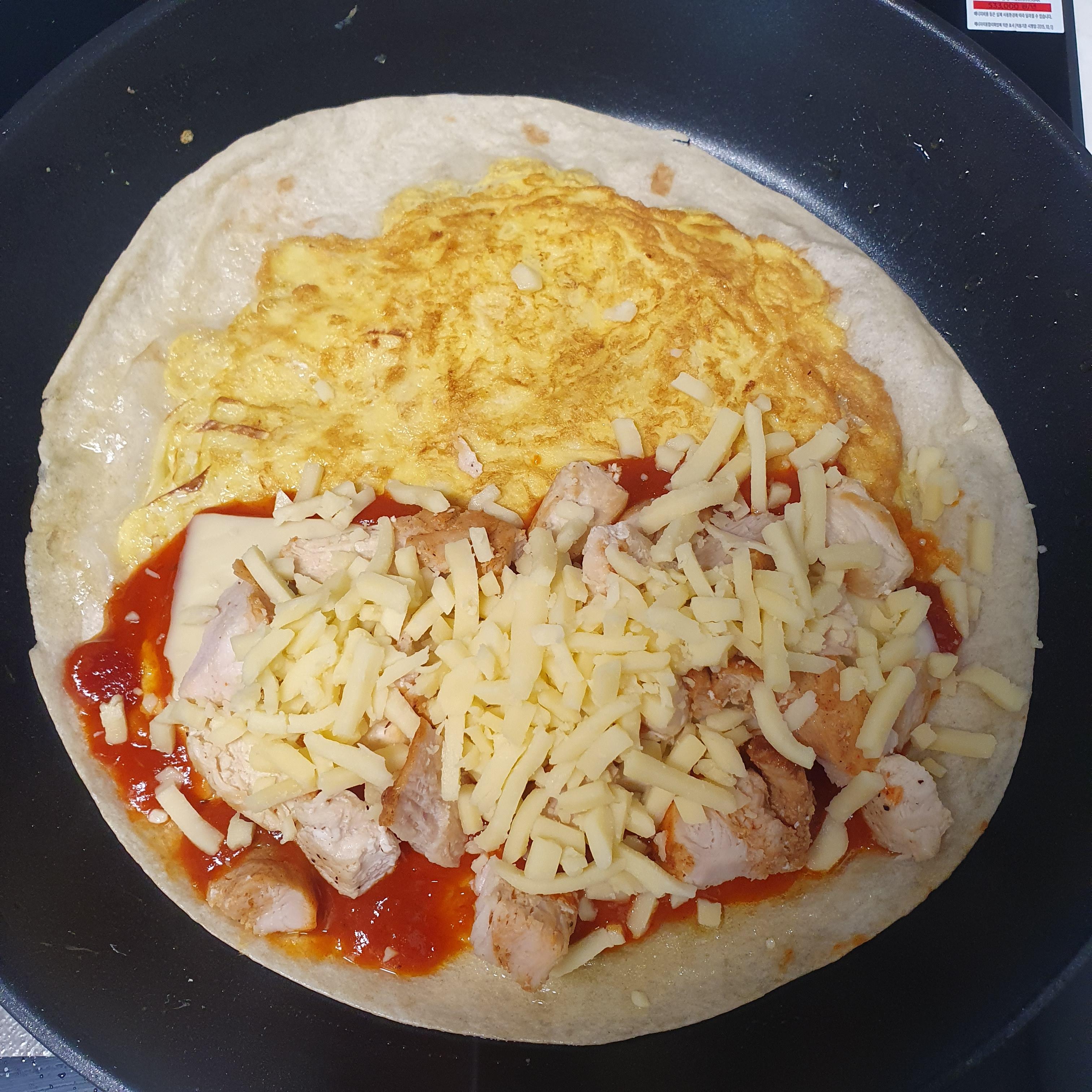 어느정도 익으면 그 위에 또띠아를 얹어줍니다