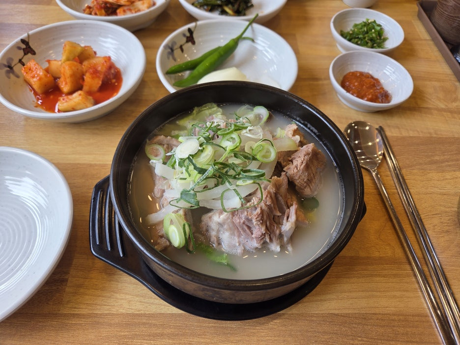 감자탕 같으면서도 맑은 국물이 매력적이에요