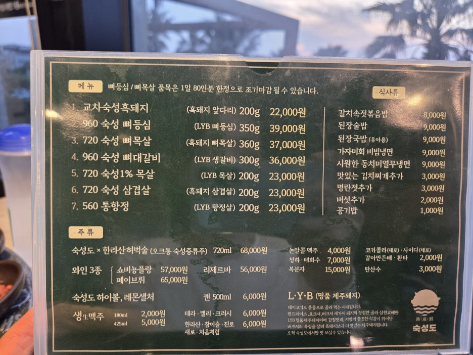 교배한 명품 제주 돼지로 오직 숙성도에서만 맛 볼 수 있데요