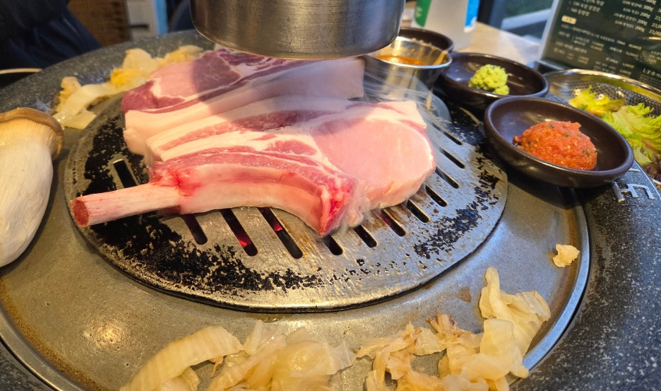 노릇노릇 맛있게 구워지고 있는 고기