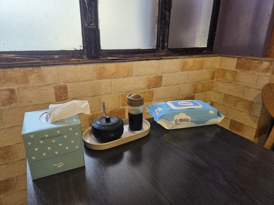 와사비와 간장이 놓여져 있는 테이블