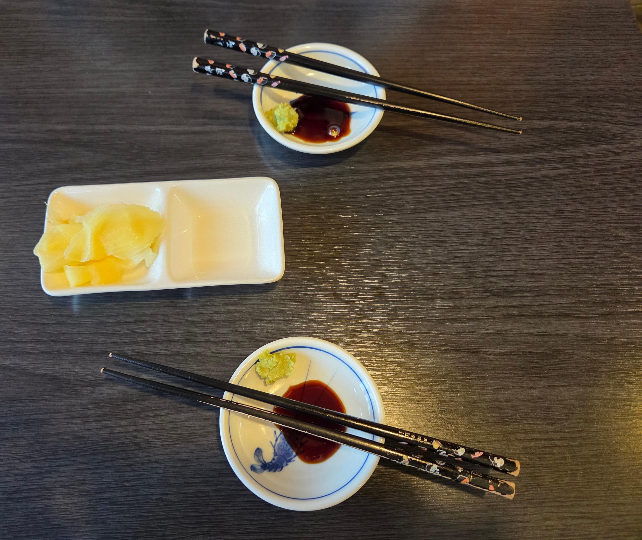 생강 절임과 간장 종지, 젓가락을