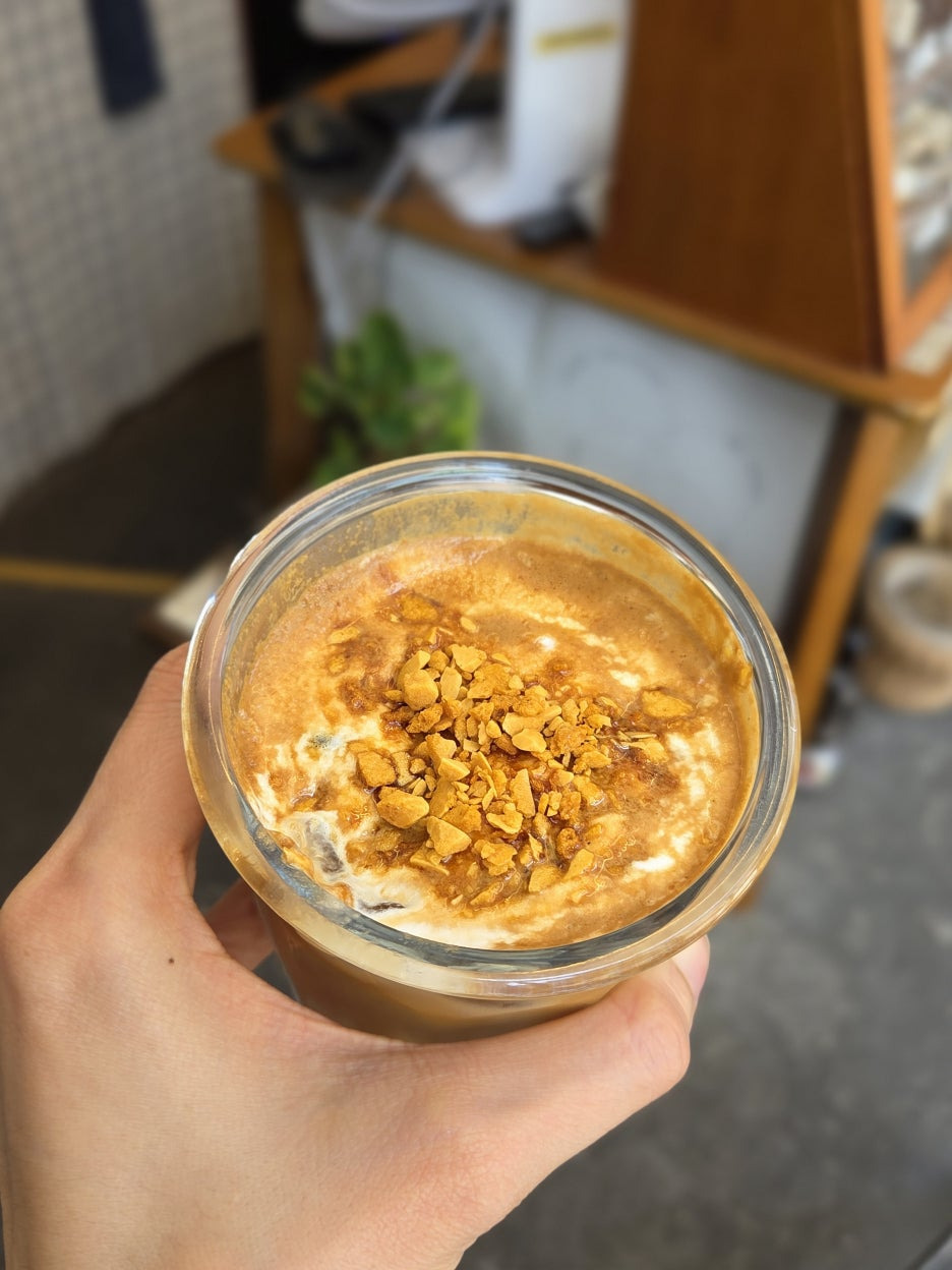 크림위에 달고나를 더한 달달한 커피에요