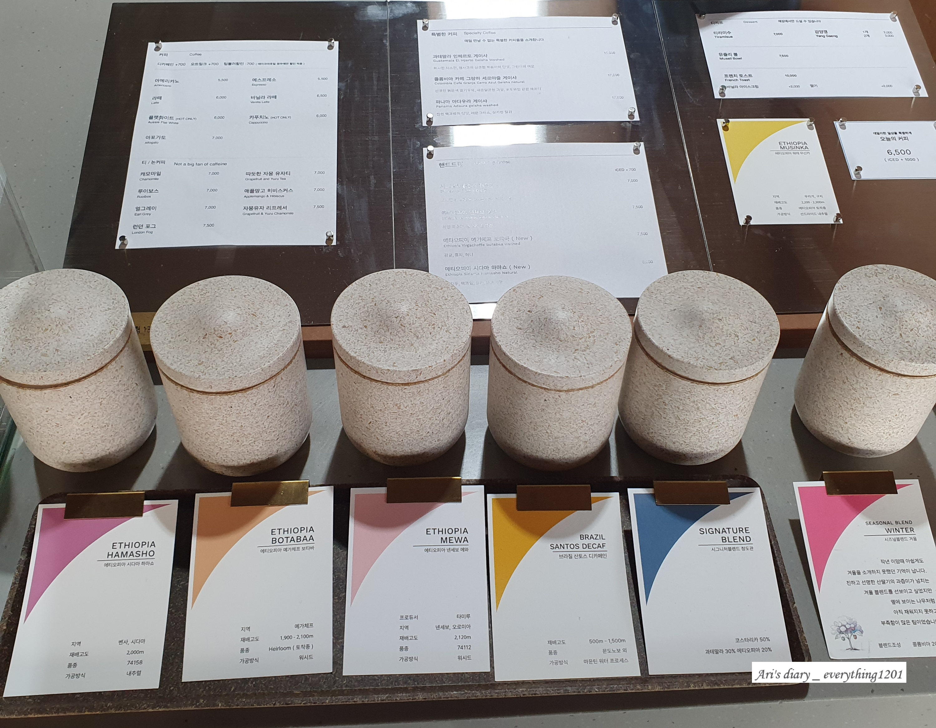 제가 갔을 때는 6 종류의 원두 선택이 가능했고